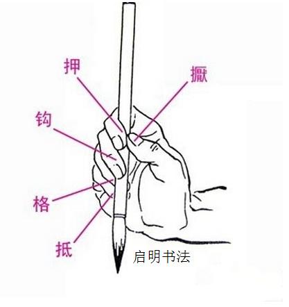 Diagram of the five-finger brush holding method